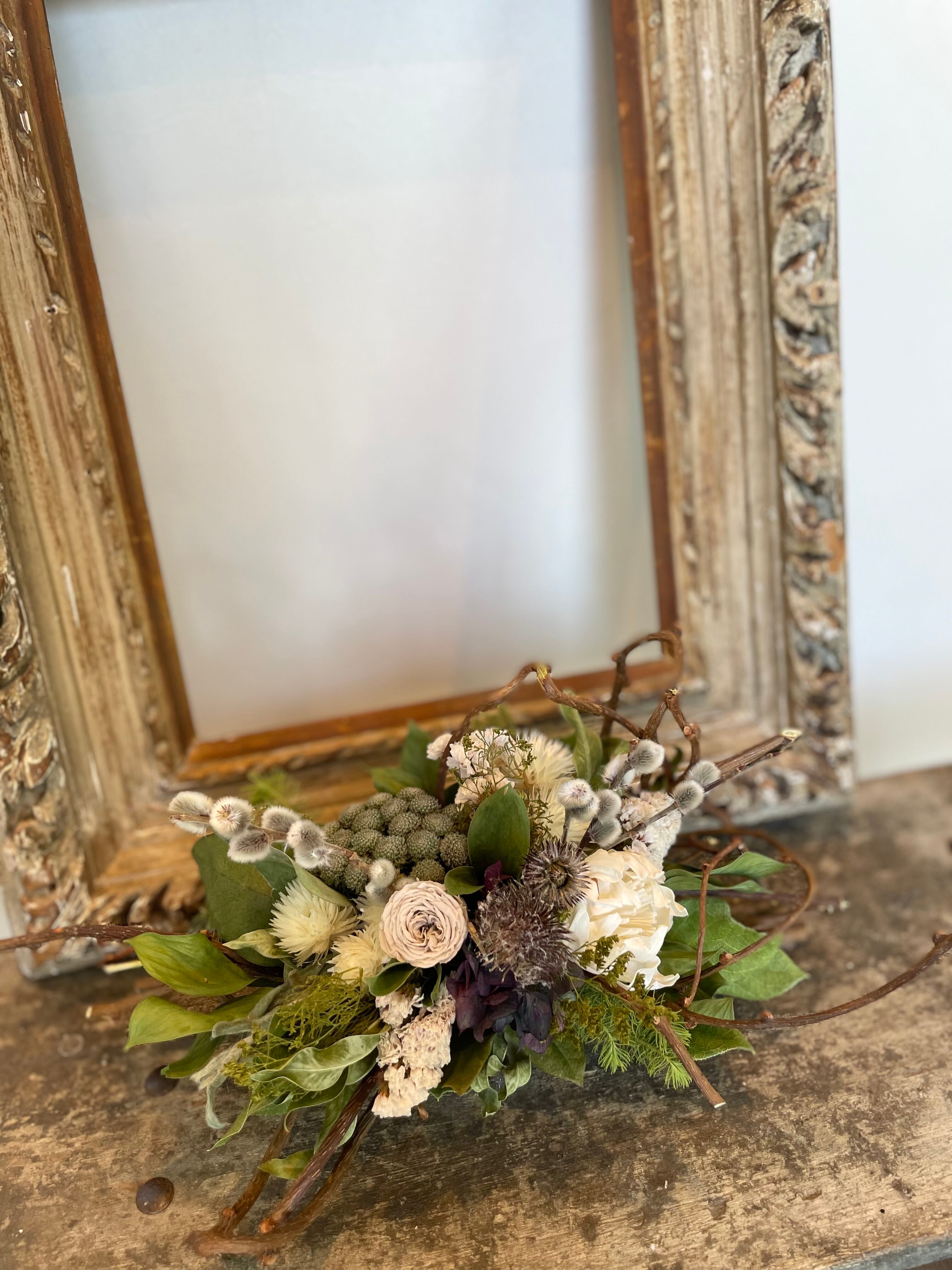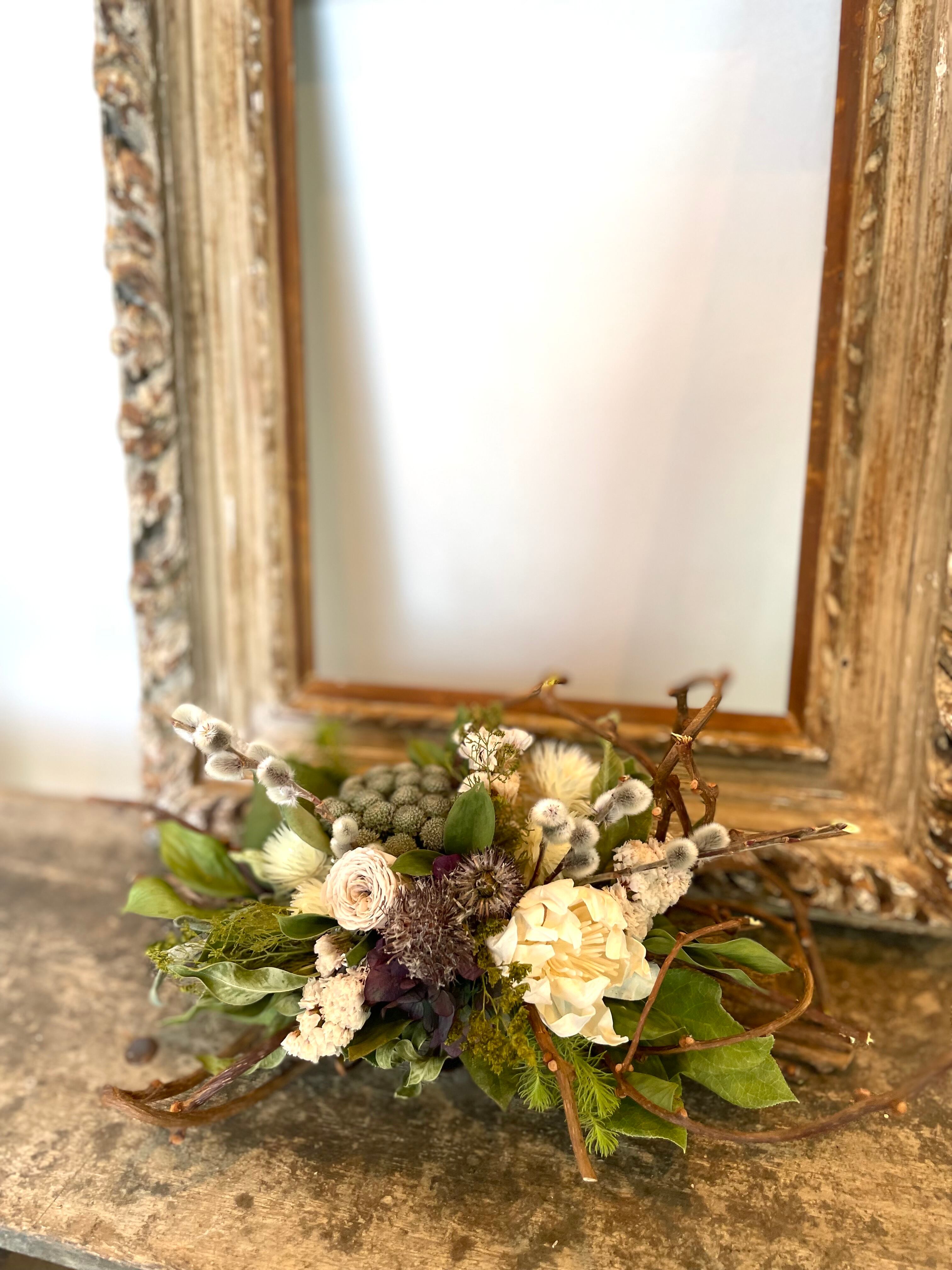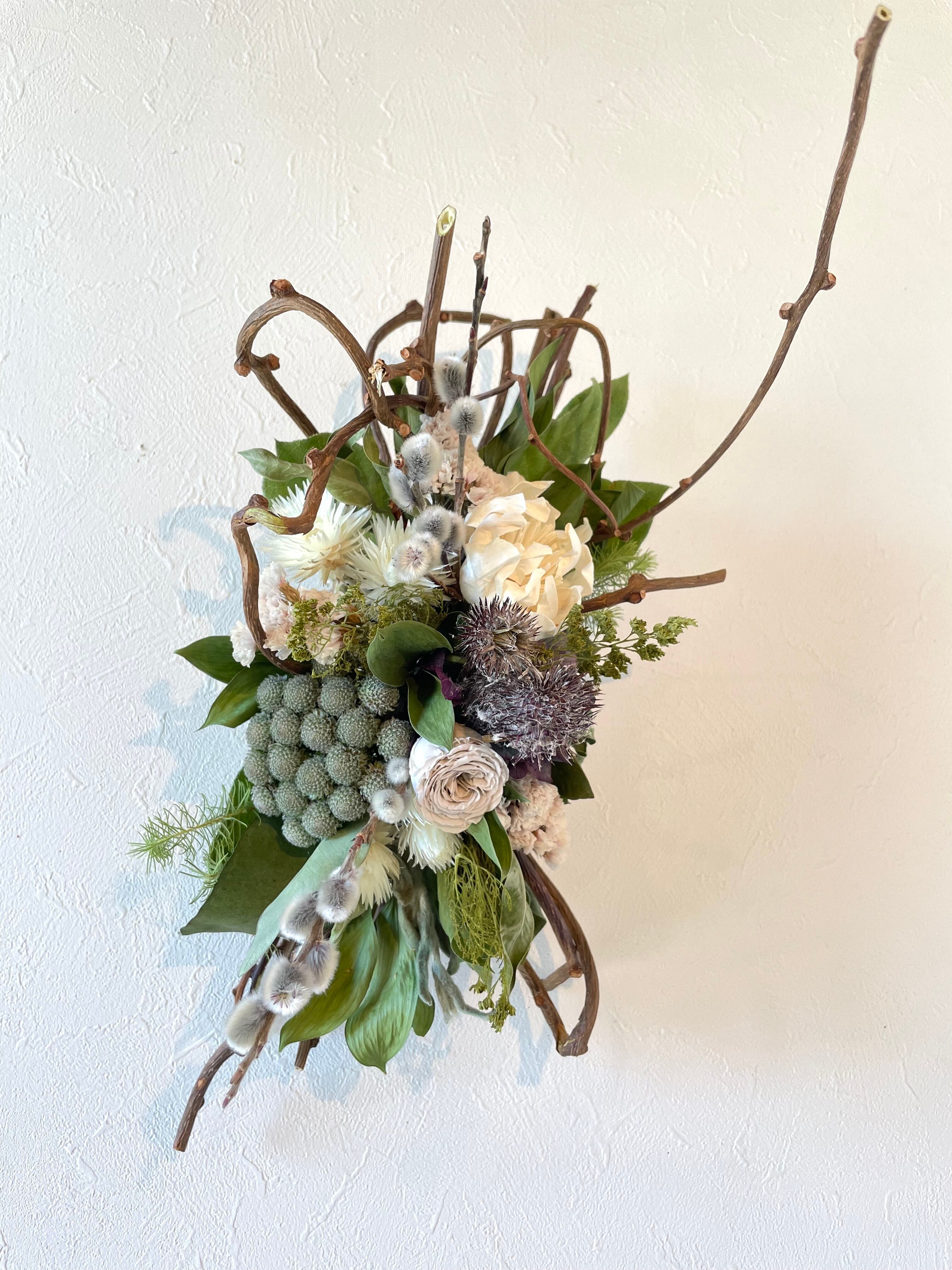 【DF-258 キウイヅルのアレンジ(白×グリーン)・ドライフラワー】