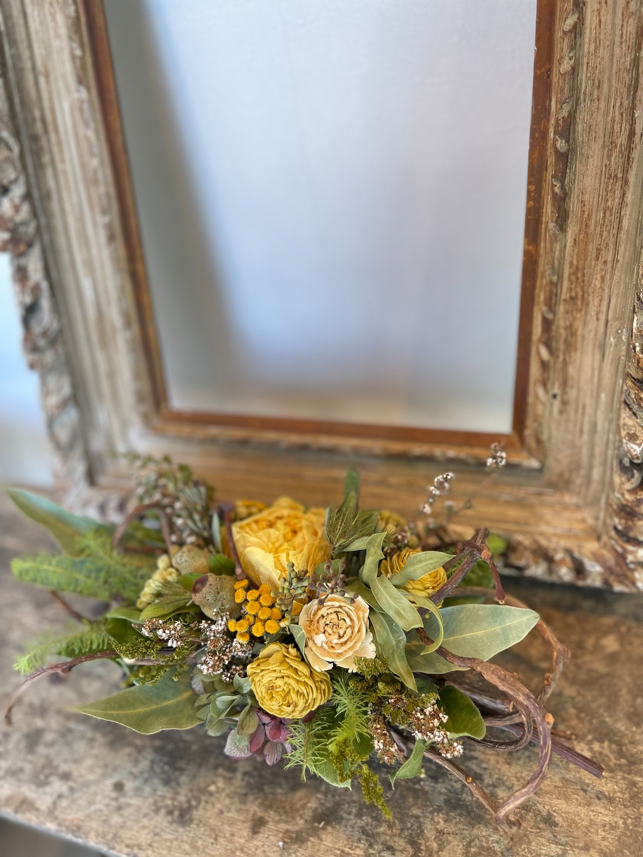 【DF-259 キウイヅルのアレンジ(黄色)・ドライフラワー】