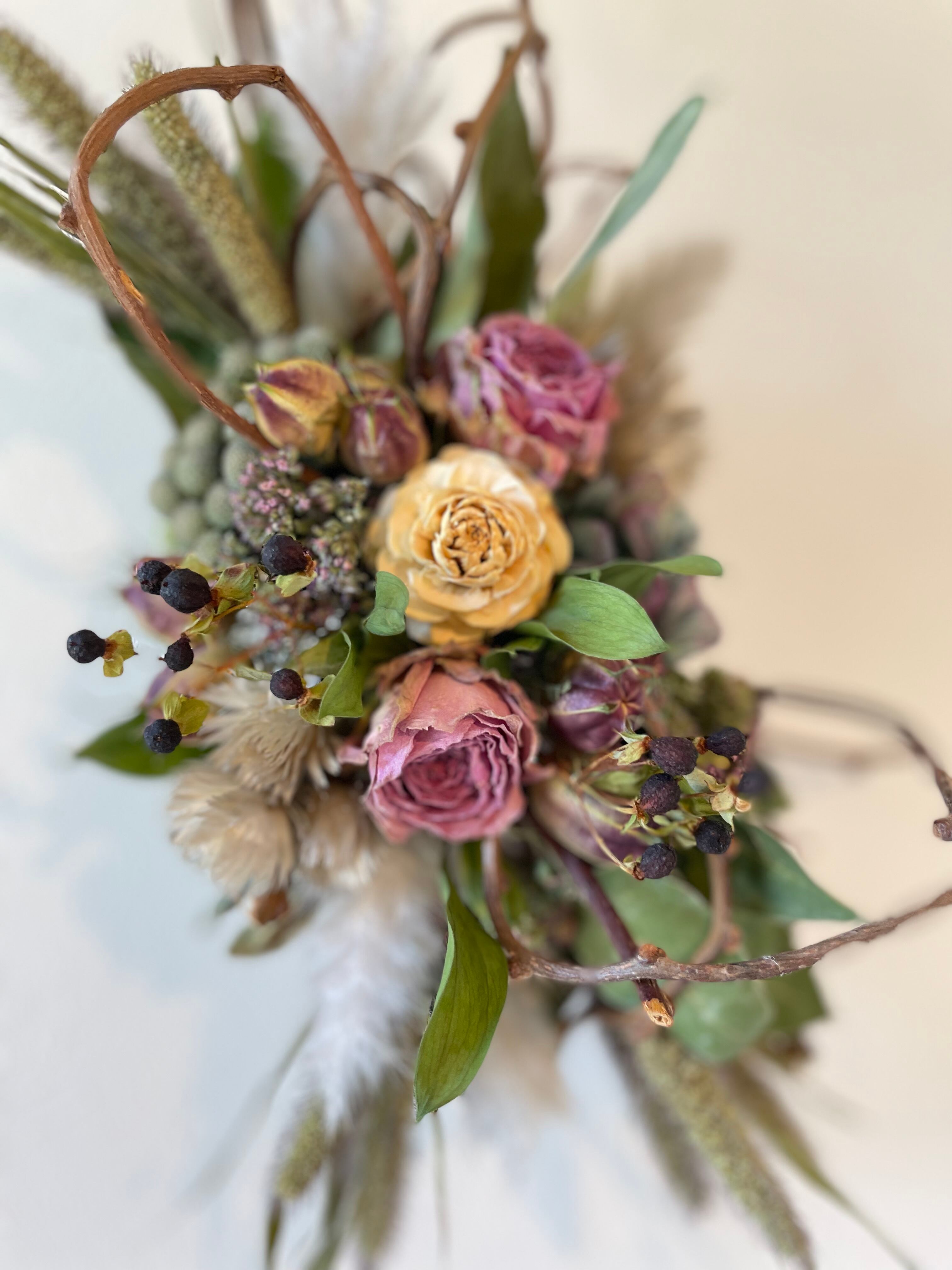 【DF-261 キウイヅルのアレンジ(モーヴピンク)・ドライフラワー)