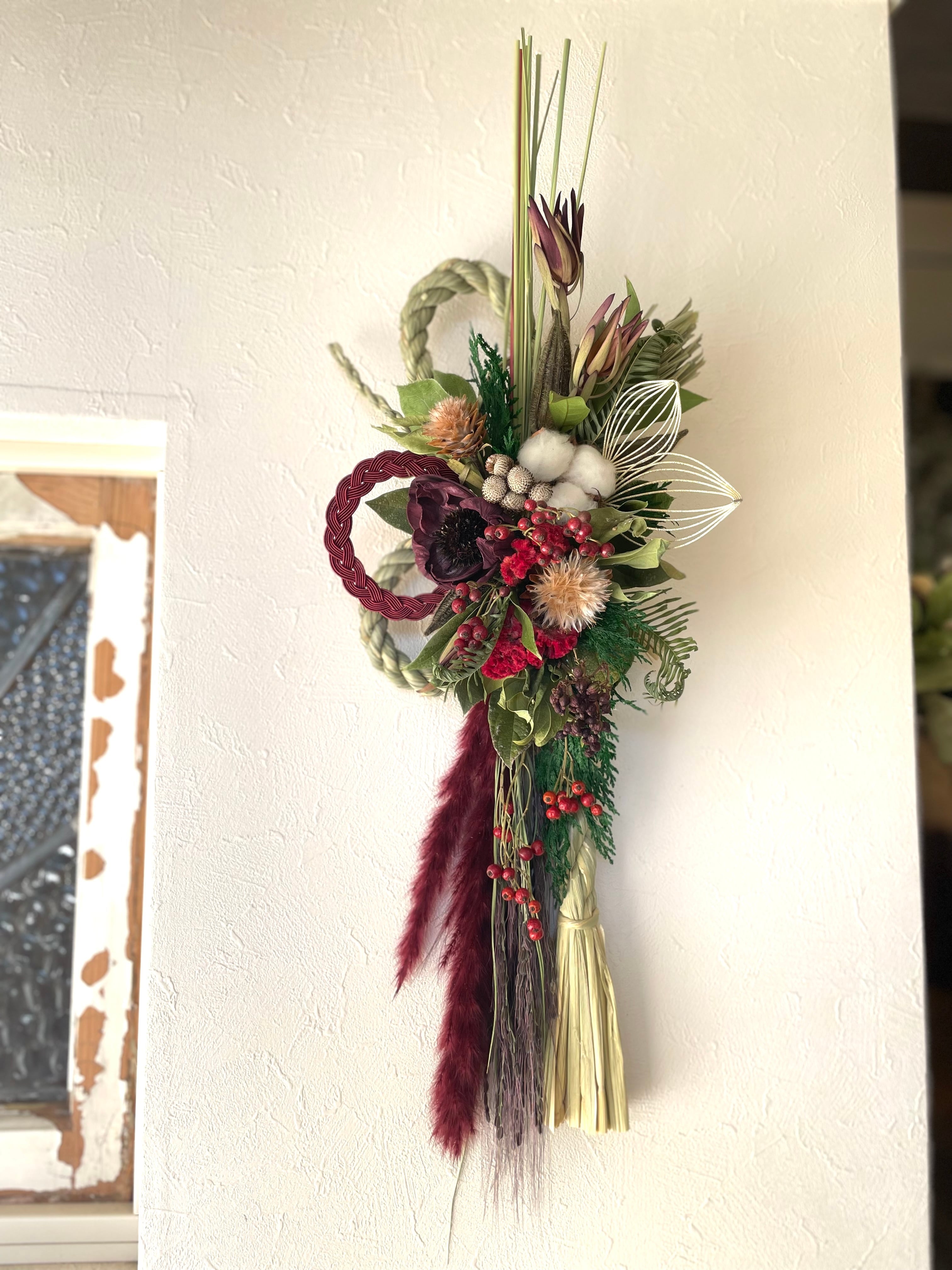 【DF-279 しめ飾り・双葉・赤・ドライフラワー】