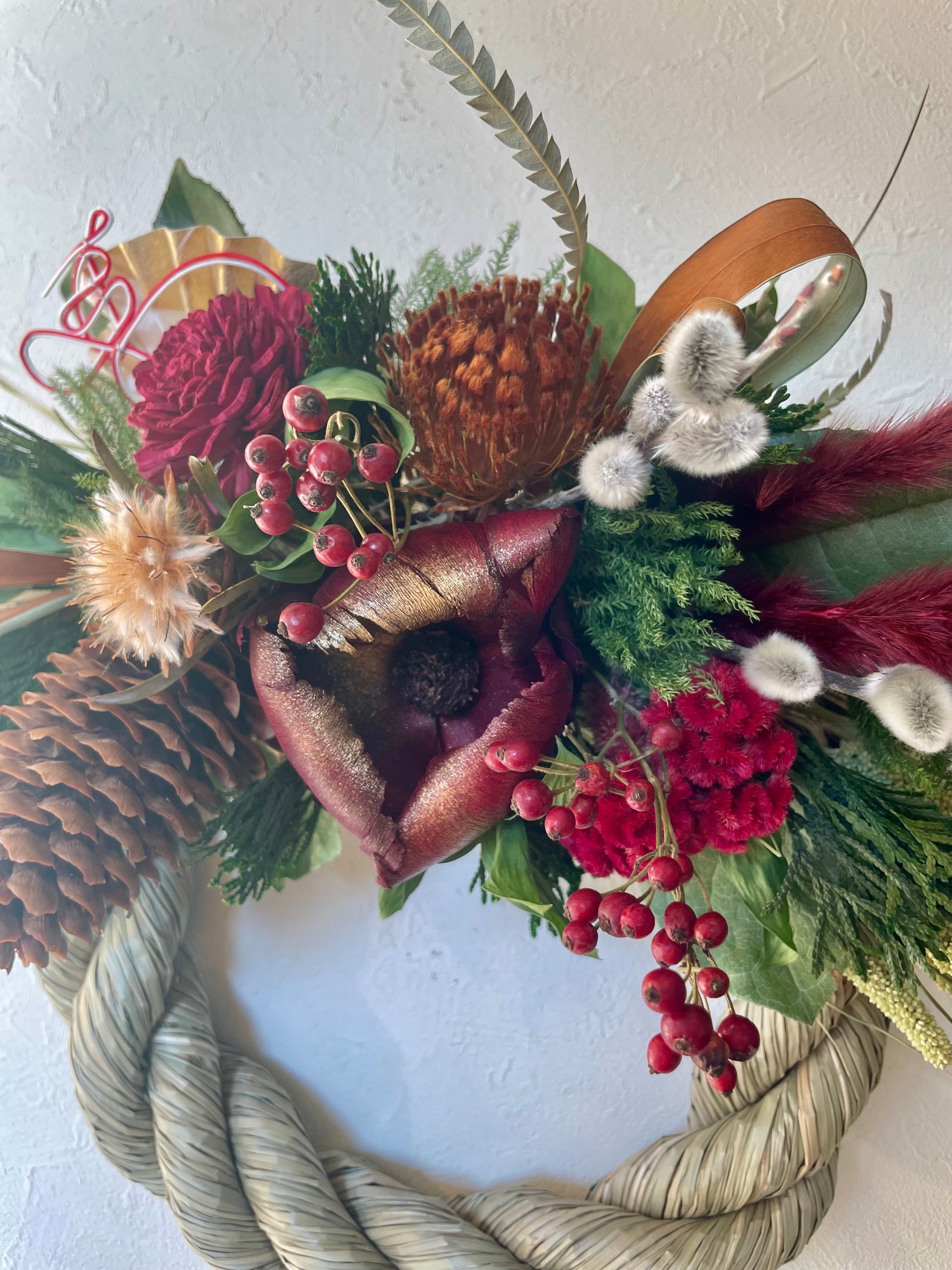 【DF-287 しめ飾り・丸・赤・ドライフラワー】